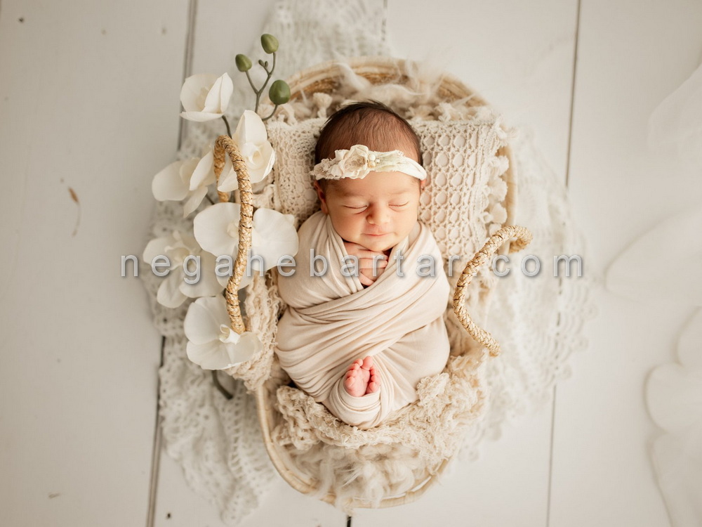 رعایت زمان مناسب عکس آتلیه ای نوزاد دختر